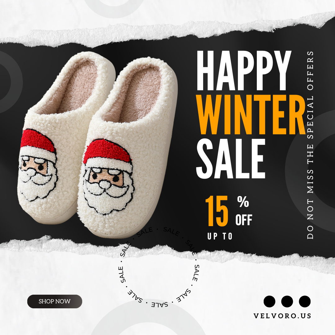 Christmas Home Slippers Cute Cartoon Santa Claus Cotton Slippers For Women And Men Couples Winter Warm Furry Shoes
